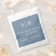 Classic dusty blue monogram wedding paper bag favour for a beautiful wedding favours as a thank you for guests.