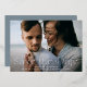 Announce your wedding in style with these elegant foil save the date cards. The design features your full-bleed horizontal photo with "Save the Date" in silver foil lettering. Personalise the modern photo save the date card with your names, wedding date, wedding location, and invitation details. The back of the card features additional details such as your wedding website in white lettering on a solid dusty blue background.