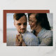 Announce your wedding in style with these elegant foil save the date cards. The design features your full-bleed horizontal photo with "Save the Date" in gold foil lettering. Personalise the modern photo save the date card with your names, wedding date, wedding location, and invitation details. The back of the card features additional details such as your wedding website in white lettering on a solid brown clay background.