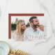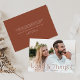 Elegant wedding thank you cards featuring your full-bleed horizontal wedding photo with "Love and Thanks" in brown clay lettering. Personalise the modern photo thank you card with your name. The back of the photo wedding thank you card displays your custom message in white lettering with a solid clay background.