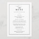 This Classic Elegant Wedding Menu is simple and versatile. It features a chic black and white design with a monogram, script details, simple frame and formal editable text. Click the edit button to customise this design.