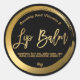 This product label for handmade lip balm features classic and elegant gold foil on a contrasting black background. It can be used to add that finishing touch to gifts for friends and family, or it can be used to give a professional look to your handmade products for sale.