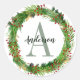 Classic Elegant Christmas Wreath Monogram Initial Round Sticker