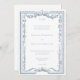 Announce your special day with an elegant traditional wedding invitation featuring a detailed, vintage-style engraving border of florals and ribbons in soft dusty blue. Perfect for a formal ceremony or an affair with a classic, timeless aesthetic. This refined design offers an opulent look. Created by Simply Farmhouse Press.