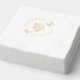 Custom-designed wedding foil napkins featuring classic elegant foliage wedding logo design with couple's name, initials, and wedding date.