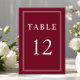 Classic Elegant Formal Burgundy Red Wedding Table Number Card