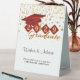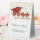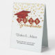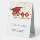 This elegant table tent sign features red and gold shield and cap personalised with your graduating year. Custom text "Wishes & Advice" and instructions for guests. Use the 'Personalise' button to customise the product.