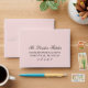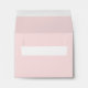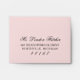 Custom A2 light ballet pink with black wedding RSVP response card envelopes feature an elegant white return address that can be personalised.
