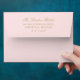 Custom A7 light pink and antique gold wedding invitation mailing envelopes feature an elegant white return address that can be personalised. Please shop our Classic Elegant Antique Gold Wedding Collection for coordinating designs.