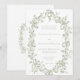 Announce your special day with an elegant traditional wedding invitation featuring a delicate, vintage-style engraving oval frame of florals and ribbons in soft sage green. Perfect for a formal ceremony or an affair with a classic, timeless aesthetic. This refined design offers an opulent look. Created by Simply Farmhouse Press.
