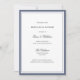 Classic rehearsal dinner invitation. Elegant traditional script in dark grey within a blue double border. Blue back. To adjust the layout, click Personalised It, Edit Text, then click and drag text sections to desired locations. Use Cntrl to select and move multiple sections at once.