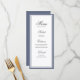 Classic wedding menu card with bride and groom names. Elegant traditional script in dark grey within a blue double border. Blue back. To adjust the layout, click Personalised It, Edit Text, then click and drag text sections to desired locations. Use Cntrl to select and move multiple sections at once.