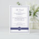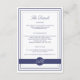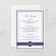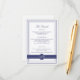 Elegant navy blue and white monogrammed wedding guest information accommodation reception details insert card in a classic formal style.
