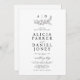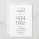 Modern, minimalist, classy, formal, monogrammed white and black typography wedding invitation featuring an elegant floral botanical leafy branch.