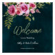 Classic emerald green, burgundy and blush pink roses floral rustic dark fairytale moody themed wedding Welcome Sign poster. Digital Download available.