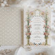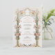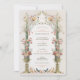 This wedding invitation is a romantic canvas painted with the soft tones of an English garden. Carnation pink, coral, and ivory blooms cascade down ornate golden urns, symbolising the growth and blossoming of love. The floral archway, adorned with delicate greenery, frames the couple's initials in a traditional Victorian style, creating an inviting entrance to the celebration of unity. Below, a quaint scene unfolds with a family of birds, echoing the theme of togetherness. This design captures the essence of timeless elegance, perfect for the couple who wishes to blend the classic charm of a bygone era with the joyous promise of their future together.
