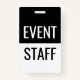 Classic event staff ID badges in simple black and white printed on both sides for corporate events, concerts, or seminars available in large quantities in bulk on a budget or small quantities for smaller events.