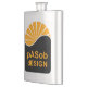 The product is a good size and came exactly as it was pictured. The lid is not attached to the flask, which could be dangerous on drunken nights... The print came out surprisingly well and looks very sharp. Would definitely recommend.
