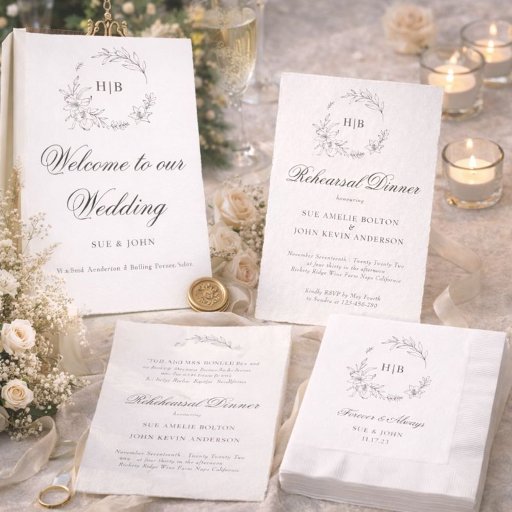 Classic Floral Wreath Monogram Wedding Napkin