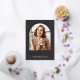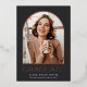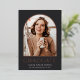 Elegant photo graduation announcement features a vertical or portrait orientated photo in a unique arched layout, on a charcoal black background with rose gold foil trim. "Graduate" appears beneath, along with your graduate's name and school or college. Add a personal message to the back, along with an additional photo.