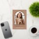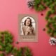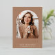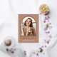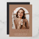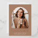 Elegant photo graduation announcement features a vertical or portrait orientated photo in a unique arched layout, on a light terracotta background with rose gold foil trim. "Graduate" appears beneath, along with your graduate's name and school or college. Add a personal message to the back, along with an additional photo.