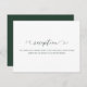 Simple and classic forest green and white wedding reception card with beautiful calligraphy script.