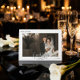 Express your gratitude with timeless sophistication using this classic wedding thank you card. The design features a formal calligraphy script paired with intricate decorative filigree scroll flourishes, creating a look of traditional romance and elegance. A monochrome palette of charcoal grey and black typography rests against a crisp white background, offering a refined aesthetic that perfectly complements black-tie or formal wedding themes. The layout includes a custom photo placeholder, allowing you to easily showcase a favorite moment from your special day alongside your personalized message of thanks. Ideally suited for couples seeking a polished and graceful way to share their appreciation with friends and family.