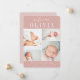 Elegant birth announcements feature four newborn photos arranged in a grid collage layout on a dusty blush pink background. "Welcome [name]" appears at the top in chic calligraphy script and classic block lettering. Personalise with baby's full name, birth stats, and a family signature at the bottom.