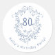 Classic French Blue Floral Crest 80th Birthday Round Sticker