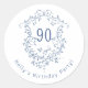 Classic French Blue Floral Crest 90th Birthday Round Sticker