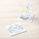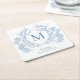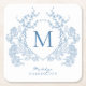 Classic French Blue Floral Crest Monogram Square Paper Coaster