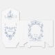 This classic and romantic design is a modern adaptation of an historic French etched frame of dusty blue intertwined roses, flowers, foliage and ribbons ca 1770 by Rococo designer Pierre Ranson. It includes customizable text fields and a complementary floral graphic on the back.