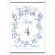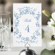 Classic French Blue Flowers & Ribbons Wedding Table Number
