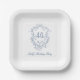 Classic French Victorian blue floral crest birthday paper plate for any age. For more advanced customisation of this design, please click the DESIGN TOOL BUTTON above!
