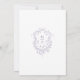 Elegant lavender floral wedding invitation with a floral crest and monograms on the back.