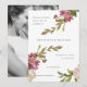 This beautiful wedding invitation features pretty pink watercolor flowers with modern greenery and classic typography on the front, and one full photo on the back. Perfect for a chic indoor or outdoor wedding.