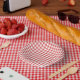 Classic Gingham Coral Red Paper Bowls Plate