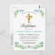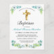 Celebrate your child's Baptism with family and special friends by inviting them with this elegant teal and gold floral Baptism Invitation Postcard. This design features a beautiful gold cross with a blue and white floral frame against a simple white background. Customise the font colour to your liking. Other styles of fonts are available. Please contact us with your special requests and we'd be happy to help you.