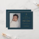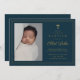 This Classic Elegant Gold Cross Baby Photo Baptism Invitation features a simple gold glitter frame and cross, script name, vertical photo and clean and chic editable text. Click the edit button to customise this design.