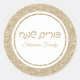 Classic Gold Glitter Hebrew Happy Purim Round Sticker