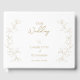 Introducing our Classic Gold Greenery Wedding Guest Book Design- meticulously designed to embody a modern romantic aesthetic. Featuring a classic blend of clean white backgrounds with delicate golden leaves gracefully complemented by a simple calligraphy script paired with an understated serif font. The result is a perfectly polished feel for your wedding, ensuring every detail reflects the elegance of your love story. This design provides an effortless option for presenting a truly beautiful and memorable marriage celebration. Whether your event graces the spring, summer, fall, or winter, the timeless vintage feel of this gilded design promises a charming and enchanted way to honour your unique journey together. We hope you fall in love with this collection as much as we have. For any questions or special requests for personalised products, please do not hesitate to reach out. We are delighted to help in any way possible.