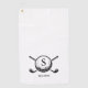 This unique classic black and white monogrammed golf towel features crossed golf clubs with ball holding the monogram initial, and the name underneath.