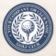 Create your own personalised set of golf coasters. A classic design featuring a victory laurel wreath, framing a ball and tee. This editable template can be customised for a golf club, country club, company name, team player, golf club member or individual golfer. Perfect for commemorating special days, corporate events, competitions, tournaments and more. Printing colours: dark midnight blue and white. Explore the online collection for matching printed designs!