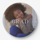 Simple and Classy Blue Grey Graduate Photo and Name with Class Year Paper Plate.