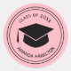 Classic Graduation Cap Personalised PLUSH PINK Classic Round Sticker