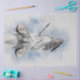 Watercolor sketch of greek statue Athena, Athens, Greece, Europe