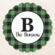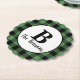 Classic Green Black Monogram Buffalo Plaid Paper Coaster