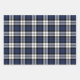 Rustic chic holiday gift wrap set features three coordinating Scottish tartan black watch plaid holiday wrapping paper sheets in classic navy blue and forest green colours with black and white accents. Sheets include a navy and green black watch plaid pattern, navy black and white watch plaid pattern, and green black and white watch plaid pattern.
