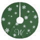 This tree skirt is accented with your family monogram on a classic green background covered in snowflakes.