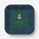 Classic Green Navy Plaid Bear Baby Shower Paper Plate